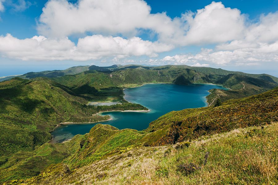 | 3. den: | Prozkoumáme západní část ostrova, navštívíme jezírko Canário, krásné vyhlídky na vulkanická jezera a vykoupeme se v termálních pramenech. Dnes se podíváme na západ ostrova. Kolem starého akvaduktu si to namíříme k jezírku Canário uprostřed lesů japonských kryptomérií. Z vyhlídek Boca do Inferno (Ďáblův chřtán) a Vista do Rei (Královská vyhlídka) se nám ukáže nejen kaldera Sete Cidades , ale i mnohá vulkanická jezera všech možných barev. Cestou, lemovanou hortenziemi a pastvinami, sjedeme až k mýtickému městečku Sete Cidades na dně kaldery, kde si pochutnáme na vynikajícím obědě. V odpolední části programu nás čeká koupání v termálních pramenech Ferraria nebo lávových bazénech Mosteiros (podle chuti a počasí). Poté zamíříme na kontrolní bod azorských velrybářů Ponta da Bretanha a skrz malebné vesnice severozápadního pobřeží s mnoha mlýny pojedeme zpět do Sao Roque. |