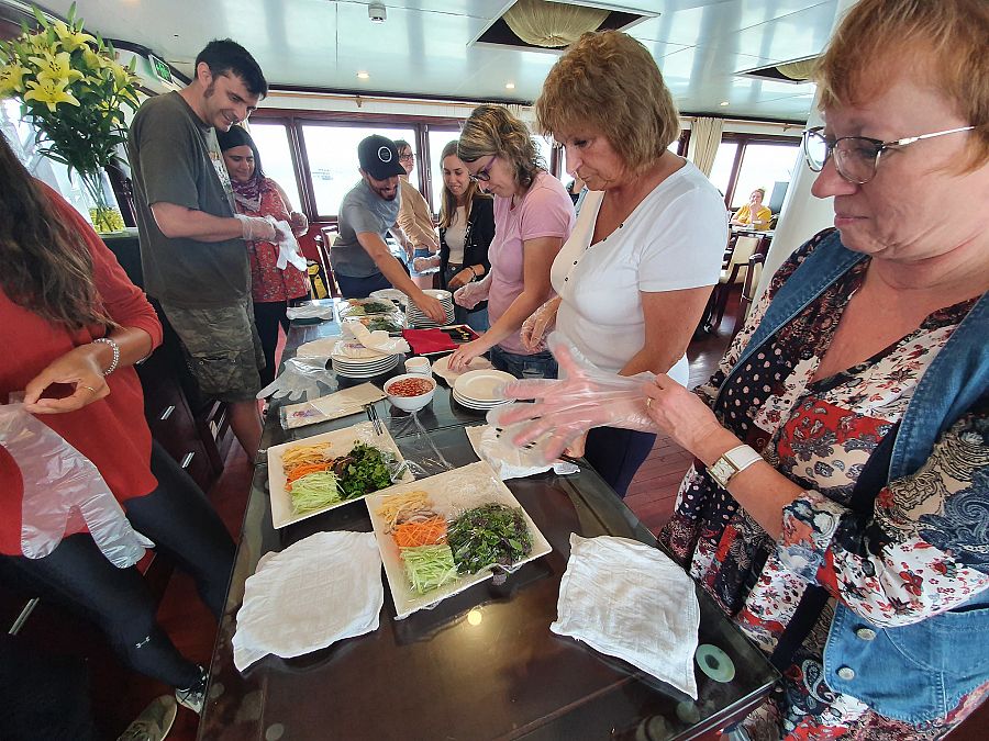 na lodi v zátoce Ha Long je zajištěný tradiční oběd a večeře