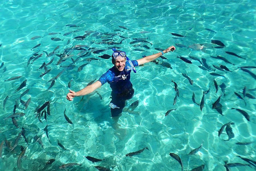 - výlet na krmení rejnoků a žraloků