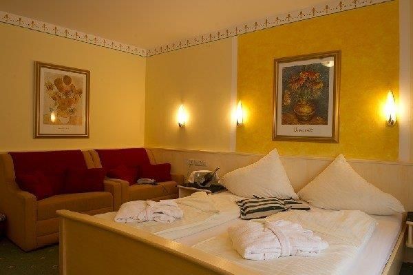Ubytování ve 2lůžkových pokojích s možností 1 přistýlky, sprchou/WC, Sat-TV, rádiem, telefonem, fénem, trezorem, minibarem a župany do wellness.