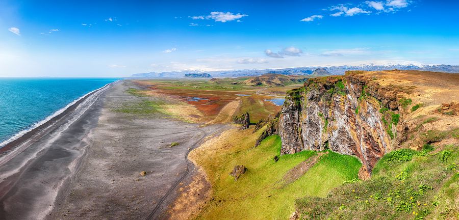 | 2. den: | Výlet po jižním pobřeží, kde se střídají nádherné výhledy na hory a ledovce a mořskou hladinu. Odhalíme výrobu pletených výrobků v městečku Vík, projdeme se po černé pláži a čekají nás jedny z nejkrásnějších islandských vodopádů. Tento den nás čeká projížďka po jižní části ostrova až k městečku Vík. Nejdříve dojedeme do vesničky Skógar, kde navštívíme skanzen a muzeum a hlavně zhlédneme velkolepý vodopád Skógafoss, který patří mezi jeden z nejfotogeničtějších na Islandu. Následovat bude mys Dyrholaey, který tvoří přírodní rezervaci. Na jaře zde hnízdí papuchálci, alkouni i kachny, během roku zde poletují hejna mořského ptactva. Z mysu se nabízí krásné výhledy na černé pláže pod ním i ledovec v dáli. V městečku Vík si budeme moci dát pozdní oběd nebo navštívit jeden z největších obchodů Icewear , který nabízí velmi kvalitní outdoorové oblečení a typický islandský prodejní artikl - svetry z pravé islandské vlny s dlouhými vlákny na povrchu, které jsou voděodolné, přičemž vnitřní vlákno je jemné a zahřívá. Na zpáteční cestě zastavíme na černé pláži Reynisfjara , která je často označována za jednu z nejkrásnějších pláží na světě. Na okolních čedičových útesech hnízdí různé druhy ptactva. Následovat bude přejezd a procházká k ledovcovému splazu a perličkou na závěr bude kouzelný vodopád Seljalandsfoss, u kterého budeme mít možnost projít se za padající vodní stěnou. Návrat na ubytování ve večerních hodinách. |