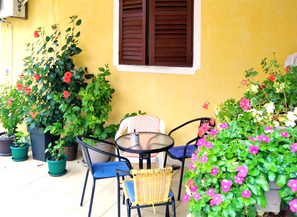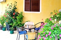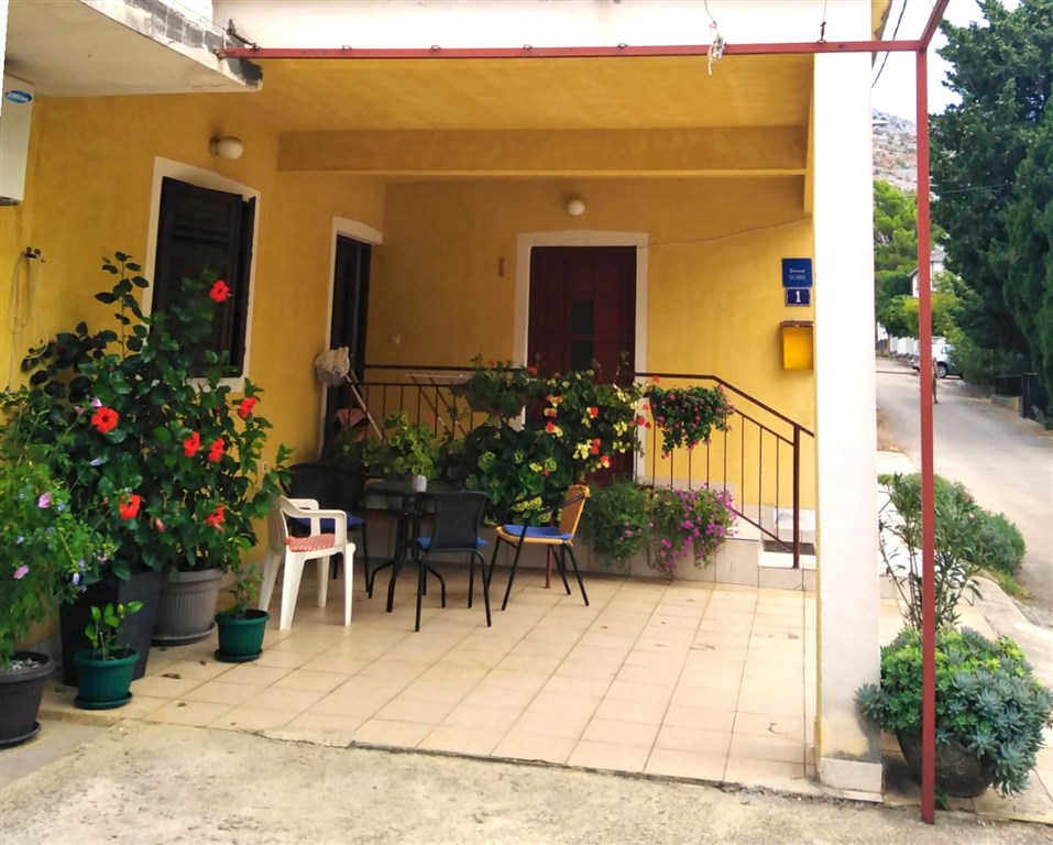 Popis pokojů: Čerstvě renovované třílůžkové studio s kuchyňským koutem (lednička, dvouvařič, varná konvice, mikrovlnka, základní nádobí), zastíněnou terasou, sprchou a WC. Klimatizace za příplatek 7 EUR/den, WiFi zdarma, TV (chorvatské programy).